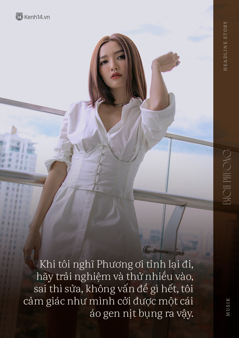 Khi tôi nghĩ: "Phương ơi tỉnh lại đi, hãy trải nghiệm và thử nhiều vào, sai thì sửa, không vấn đề gì hết" thì tôi dễ dàng hơn với bản thân, dễ dàng hơn với mọi người và chấp nhận tất cả mọi chuyện. Tôi cảm giác như mình cởi được một cái áo gen nịt bụng ra ấy. Khi mình béo và phải mặc mấy cái áo gen cho nó bó chặt vào, ngồi xuống cảm giác tắc thở thì cái khoảnh khắc tháo được chiếc cúc cuối cùng ra chính là khi tôi chấp nhận những ca khúc flop.