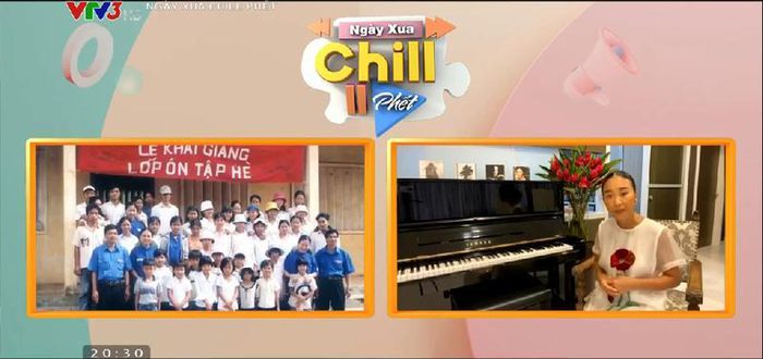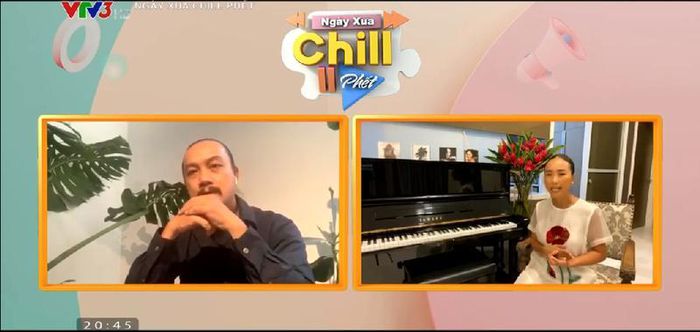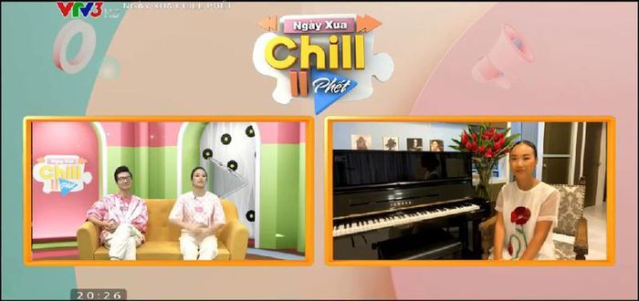Ca sĩ Đoan Trang cùng MC Phí Linh và MC Công Tố trong chương trình “Ngày xưa chill phết”. Ảnh: Chụp màn hình.