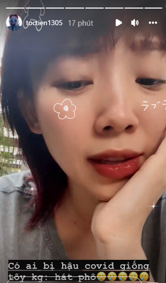 Trên Instagram, Tóc Tiên tiết lộ giọng hát của mình bị ảnh hưởng sau thời gian nhiễm Covid-19 và tự nhận xét mình hát phô hơn trước.