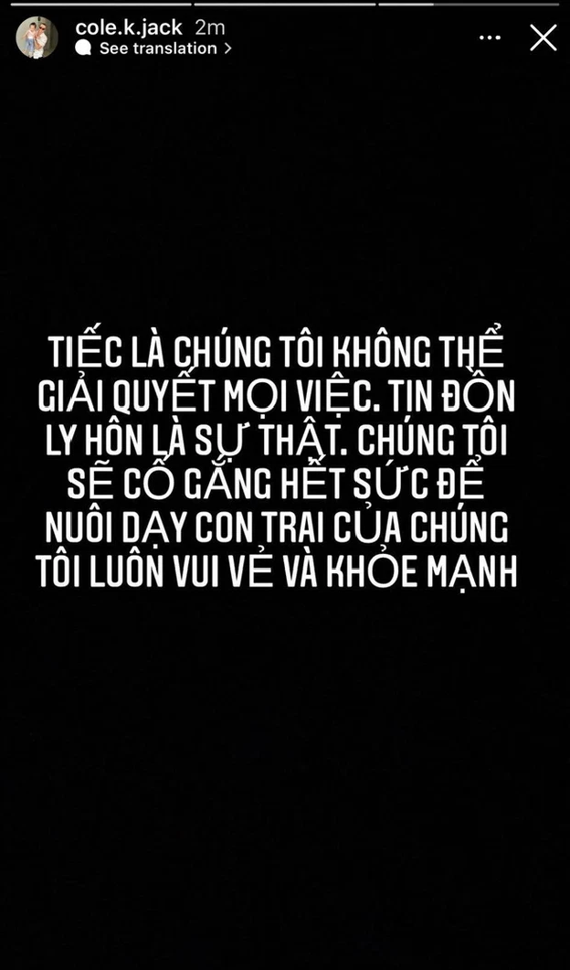 Trên trang cá nhân mới đây, chồng Tây của Á hậu, MC Hoàng Oanh đã tuyên bố ly hôn sau nhiều đồn đoán. Anh viết: "Tiếc là chúng tôi không thể giải quyết mọi việc. Tin đồn ly hôn là sự thật. Chúng tôi sẽ cố gắng hết sức để nuôi dạy con trai của chúng tôi luôn vui vẻ và khoẻ mạnh". Thông tin ngày khiến nhiều người vô cùng tiếc nuối bởi trước đó, Á hậu Hoàng Oanh và Jack được xem là 1 trong những cặp đôi đẹp nhất nhì Vbiz. Cả 2 đã có khoảng thời gian yêu nhau sâu đậm và về chung nhà bằng 1 đám cưới trong mơ vào năm 2019.
