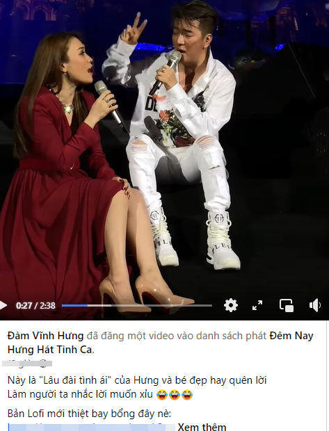 Mới đây trên trang cá nhân của mình, Đàm Vĩnh Hưng đã đăng tải đoạn video trong đó anh và nữ ca sĩ Mỹ Tâm đang ngồi song ca cực tình cảm. Cả 2 thể hiện ca khúc ‘Lâu đài tình ái’ – một ca khúc song ca quen thuộc của 2 người.
