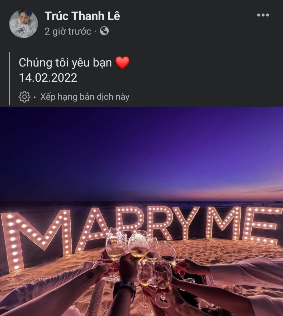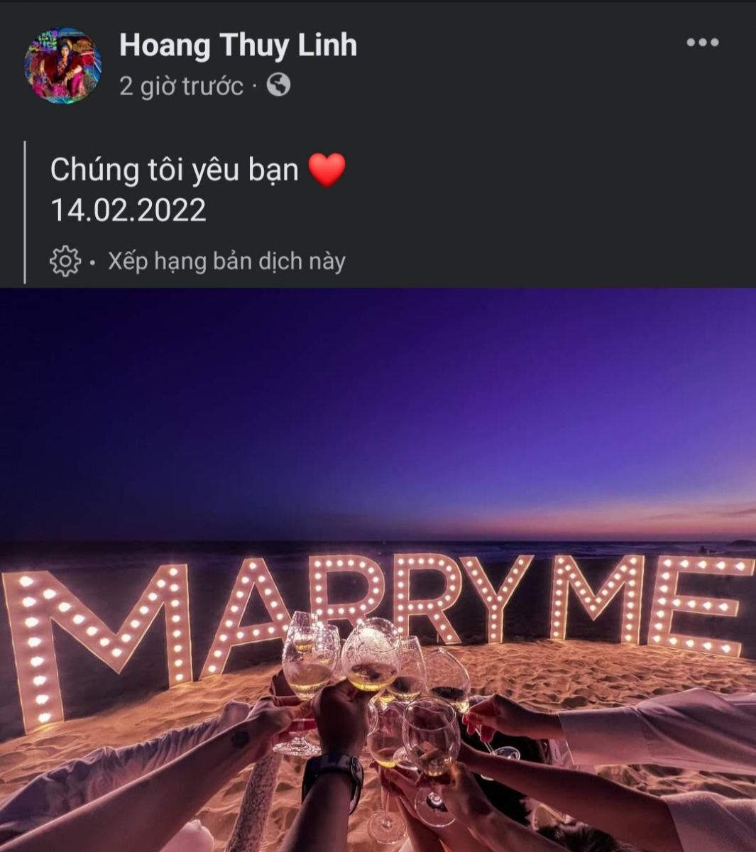 Mới đây, mạng xã hội xôn xao trước thông tin Gil Lê cầu hôn Hoàng Thuỳ Linh. Cụ thể, vào chiều 15/2, loạt sao Vbiz gồm Minh Hằng, Đông Nhi, Phạm Quỳnh Anh, Gil Lê, Hoàng Thuỳ Linh đồng loạt đăng tải hình ảnh có chữ “Marry Me” (Cưới anh nhé) “siêu to khổng lồ” với bối cảnh lãng mạn trên bờ biển. Dù chưa rõ mục đích sau động thái chung của dàn sao Vbiz là gì, tuy nhiên cư dân mạng đều đặt giả thuyết Gil Lê cầu hôn Hoàng Thuỳ Linh.