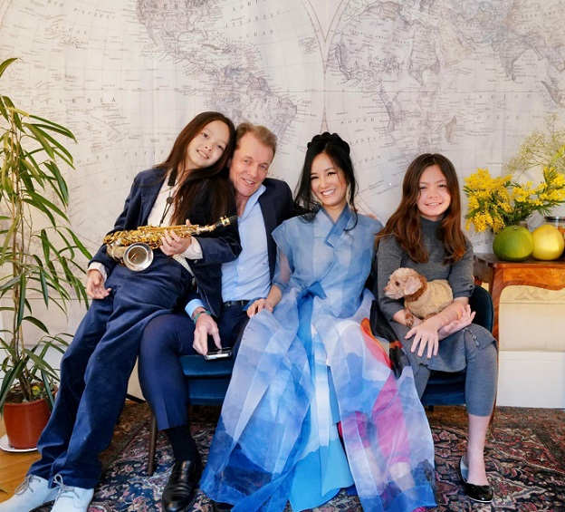 Hồng Nhung cùng bạn trai người Đức và hai con đón năm mới ở Pháp. Ảnh: NVCC