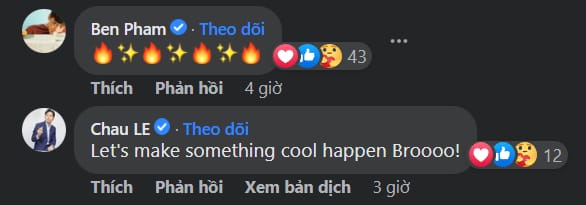 Phía dưới phần bình luận, cả cựu CEO M-TP Entertainment là Châu Lê và giám đốc sáng tạo M-TP Talent Ben Phạm cũng có những lời động viên producer này.