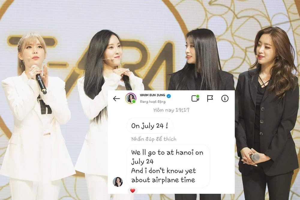 Và đoạn tin nhắn giữa một fan hâm mộ cùng Eun Jung cũng vừa được tiết lộ, xác nhận việc nhóm nhạc KPop này sẽ đến Việt Nam vào ngày 24/7.
