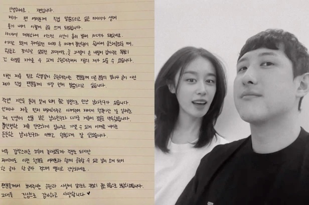 Nữ ca sĩ Jiyeon đã chia sẻ bức thư viết tay cùng hình ảnh bạn trai cầu thủ. Cô tiết lộ đám cưới sẽ diễn ra mùa Đông năm sau.