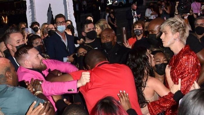 Nếu không được ngăn cản, Machine Gun Kelly và Conor McGregor đã đánh nhau trên thảm đỏ MTV VMAs 2021. Ảnh: The Brag.