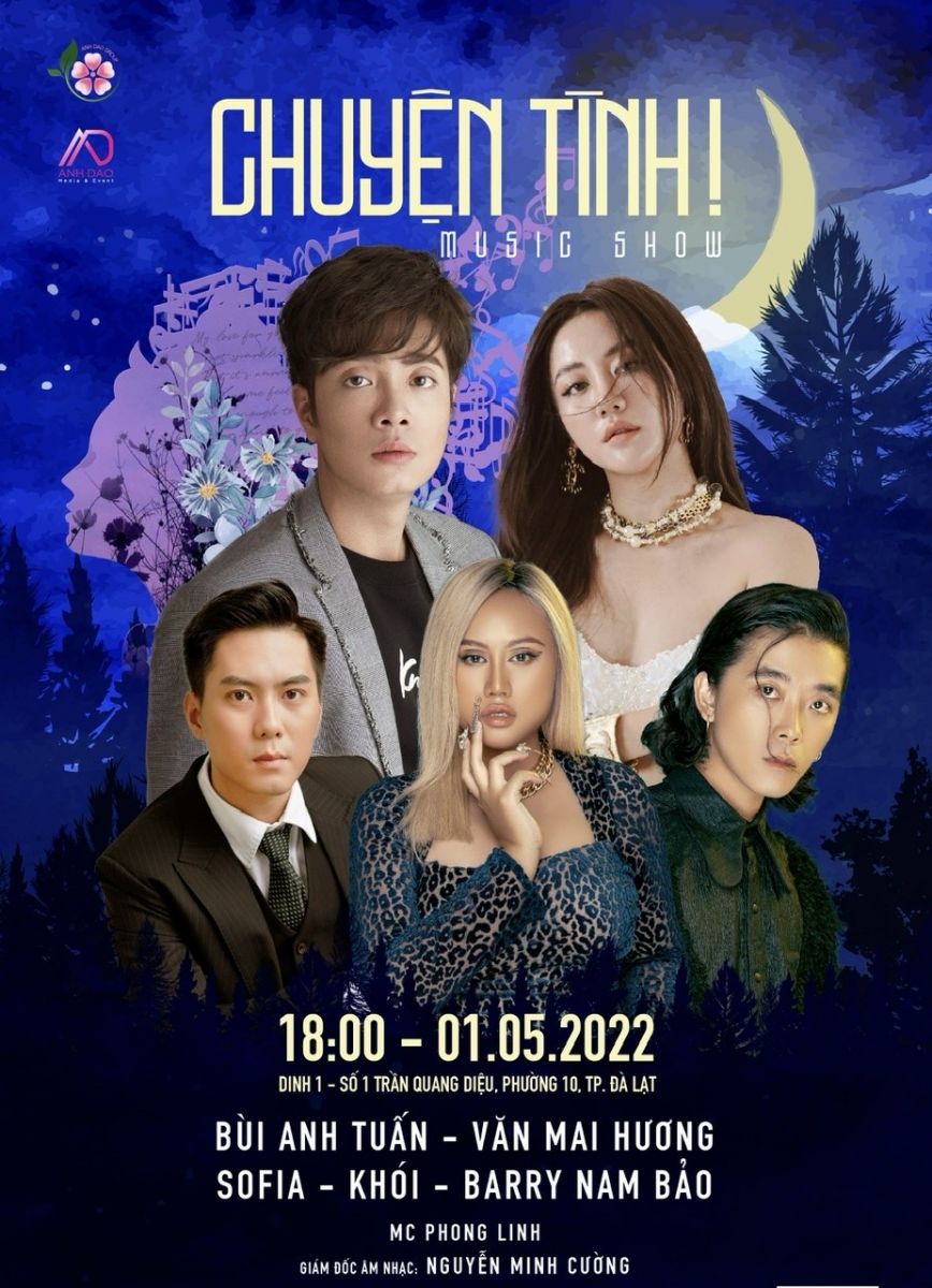 Vào 1/5 tới đây, Văn Mai Hương sẽ tham gia đêm nhạc tại Đà Lạt cùng với nhiều tên tuổi nổi tiếng như: Bùi Anh Tuấn, Sofia, rapper Khói, Barry Bảo Nam.